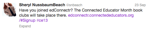 edConnectr which prompted me to register at another site where I connect with other educators , to gain/offer assistance/expertise. Because look a that tweet? Who doesn’t want to join that? P.S. I don’t read whole books lately, so I don’t know why the one about the book club spoke to me.