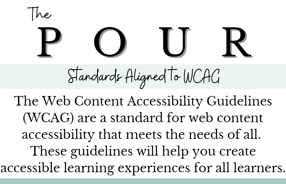 The practices exemplified through POUR guidelines exemplify why accessibility address more than only students with Individual Education Plans (IEPs).