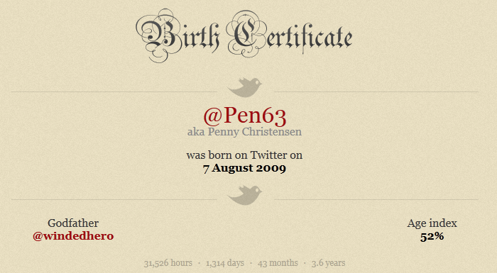 You can find your Twitter Birthday at twbirthday.com, they even give you a copy of your Twitter birth certificate free of charge, how very web 2.0 of them.